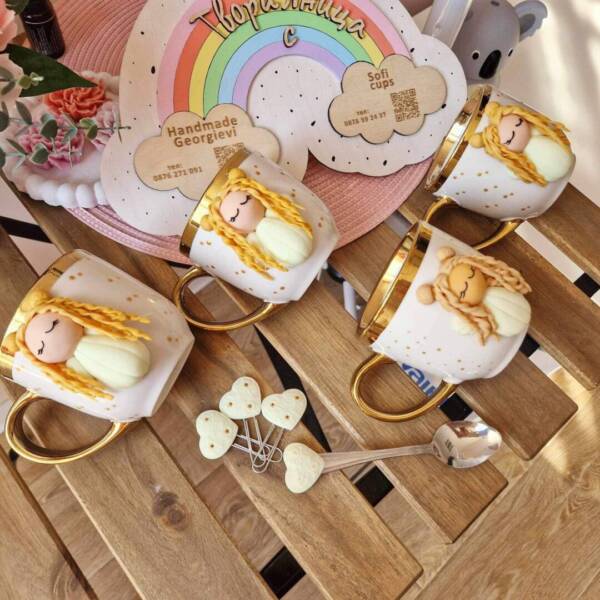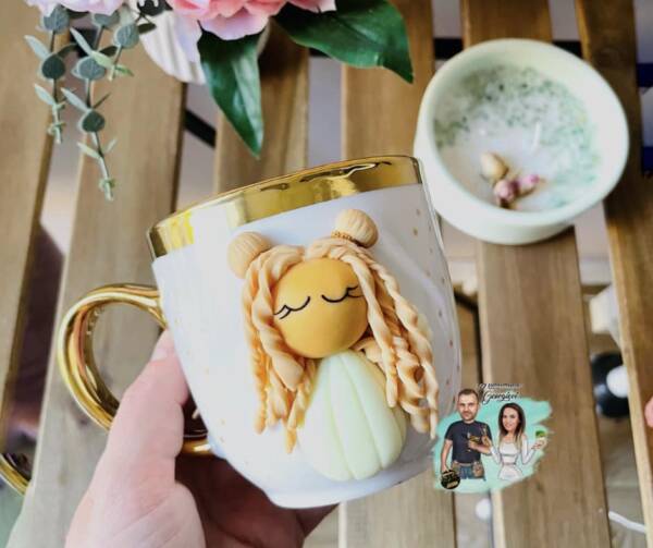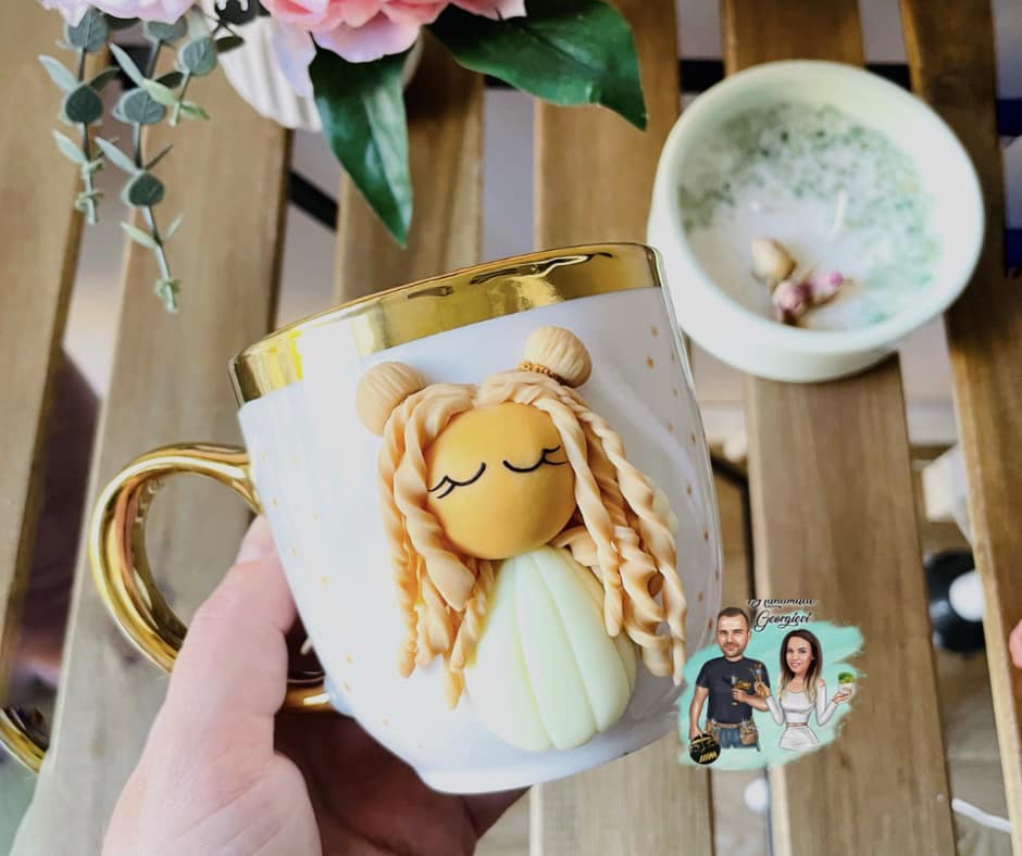 Чаша декорирана с полимерна глина ,,Ангелче- момиче”
