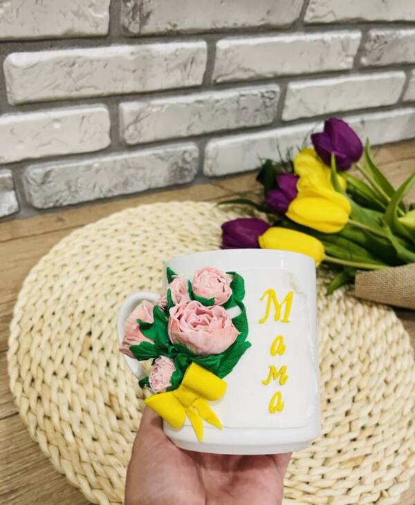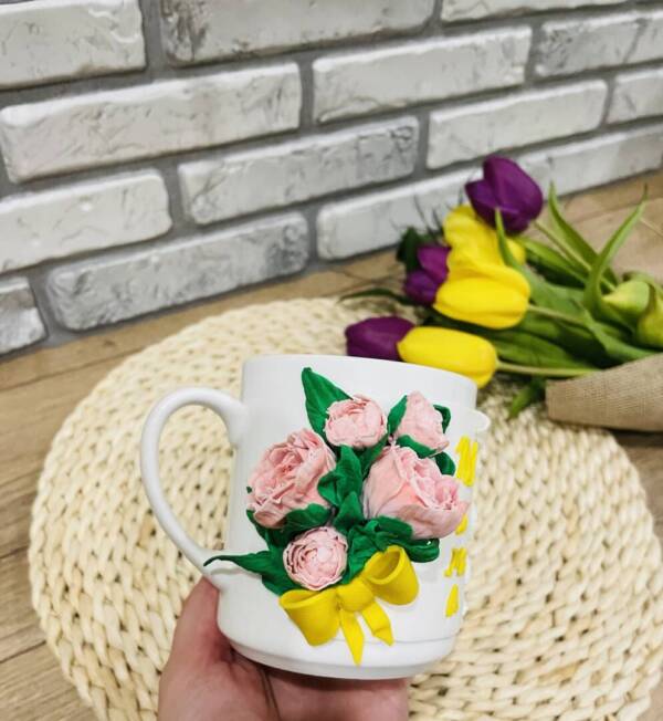 Чаша декорирана с полимерна глина ,, Божури,,