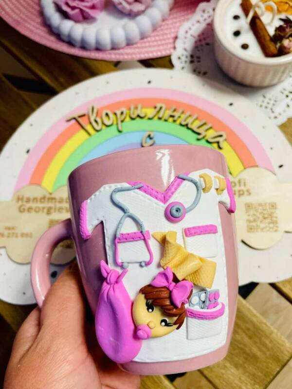 Чаша декорирана с полимерна глина ,, Лекар – акушер”