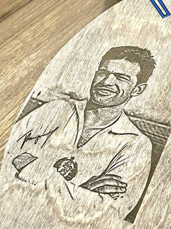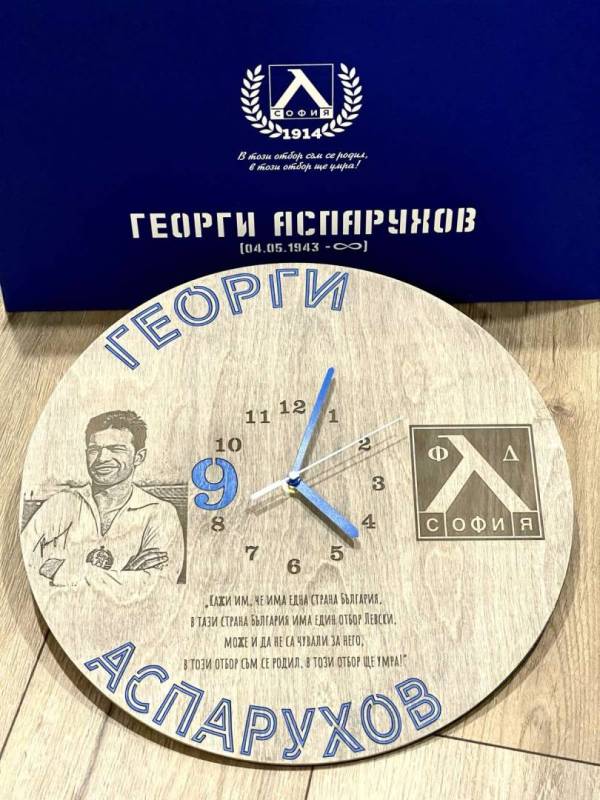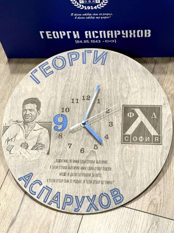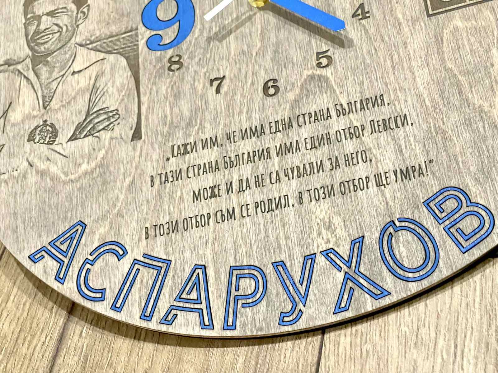 Дървен  часовник с ликът на ” Георги Аспарухов – Гунди” / модел 2 / .
