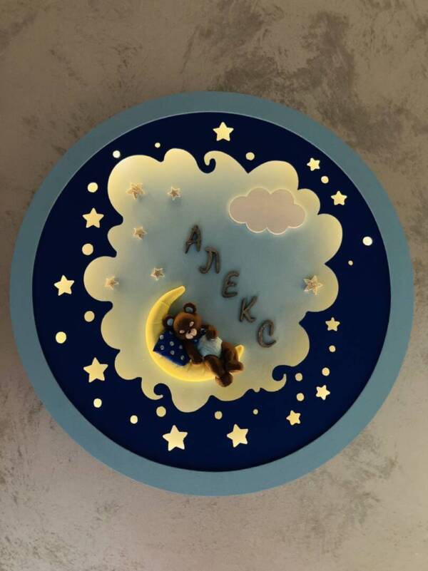 Прекрасен вариант да завършите интериора в стаята на детето с такъв модел лампа.