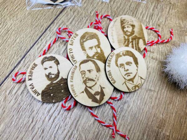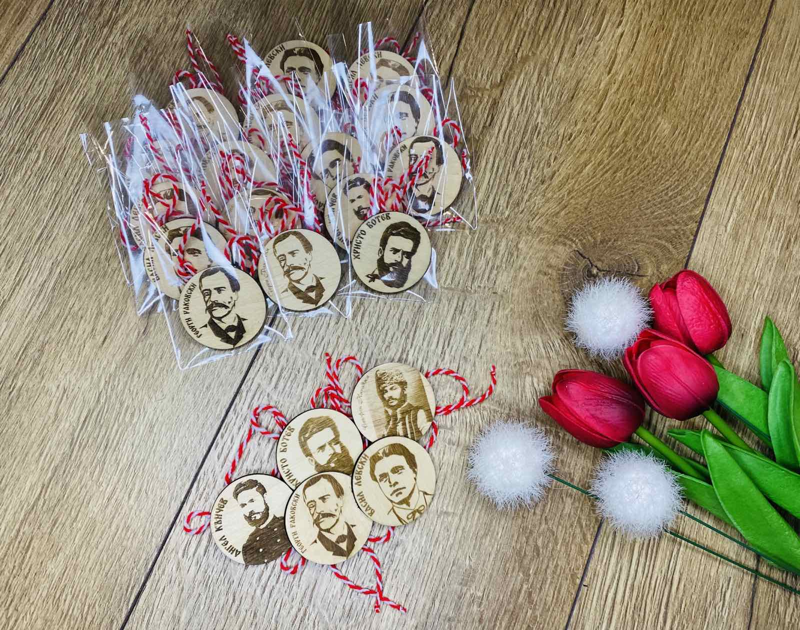Дървени мартенички с Велики български личности.