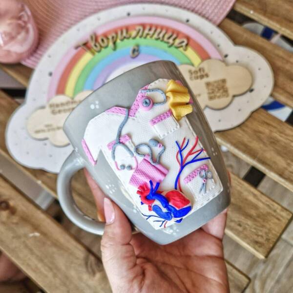 Декорирана чаша с полимерна глина ,,Лекар – съдов хирург”