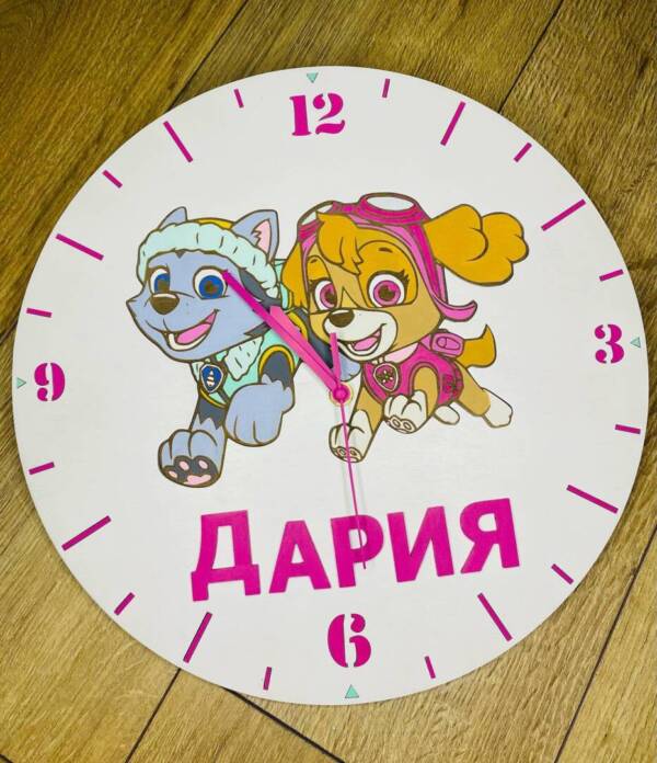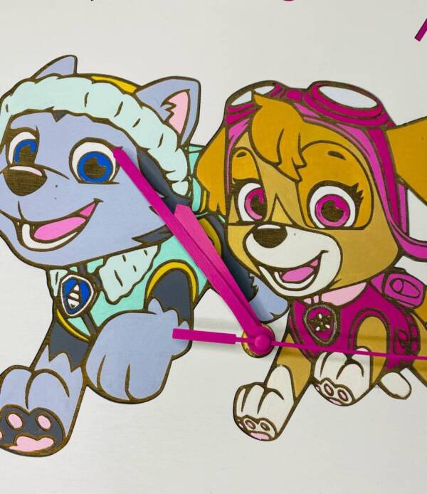 Персонализиран детски дървен часовник за дамската част ,любители на анимационният филм Paw Patrol.
