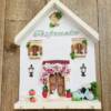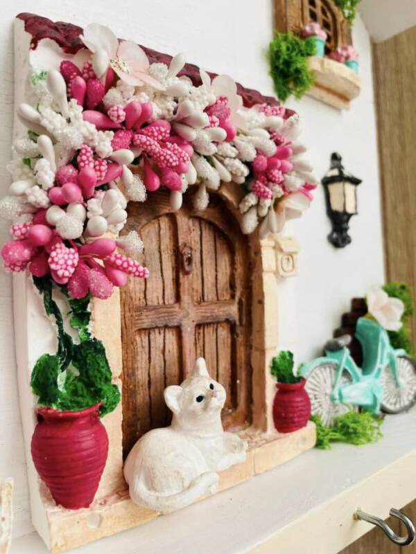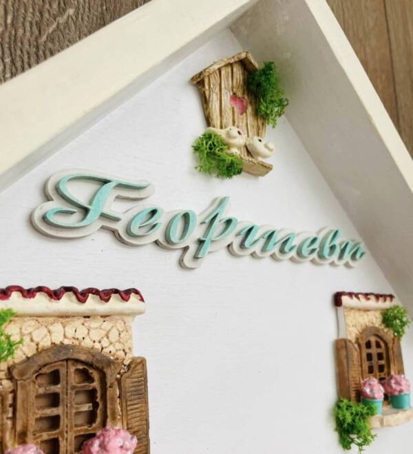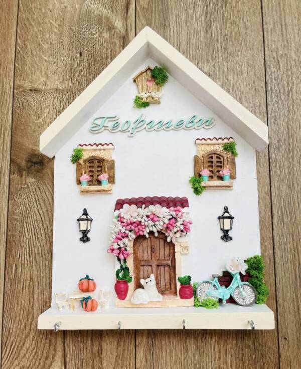 Декорирана с детайли от гипсокерамика,полимерна глина и текстил.