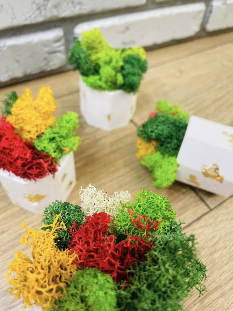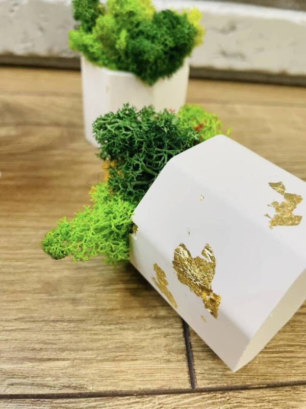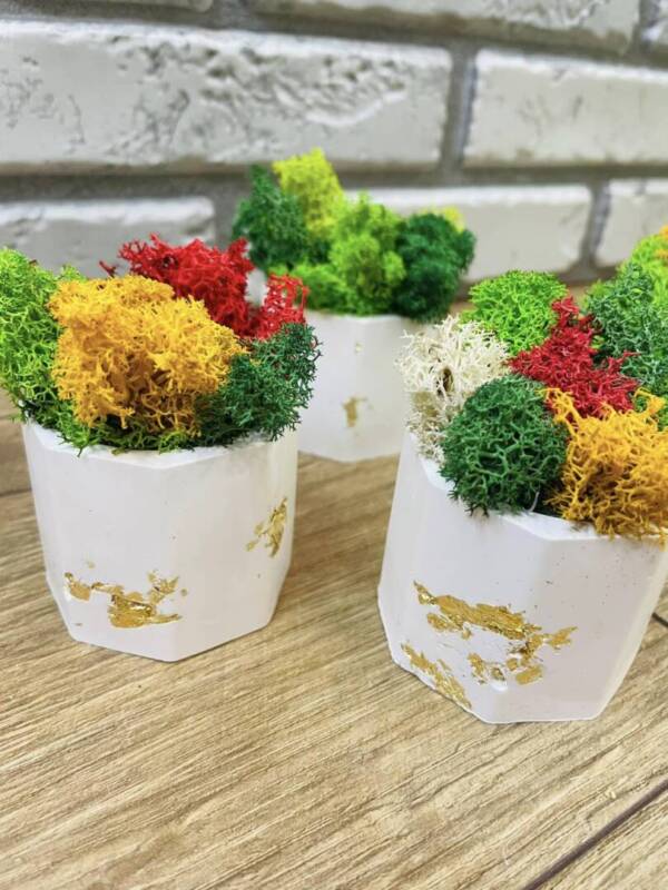 Керамична кашпа декорирана със скандинавски мъх.