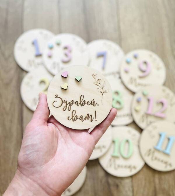 Комплектът съдържа 14 броя едностранни дървени плочки.